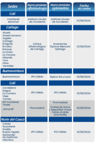 Aquí te contamos donde serás atendido para servicios de oftalmología y optometría según tu IPS primaria y sede de atención:
